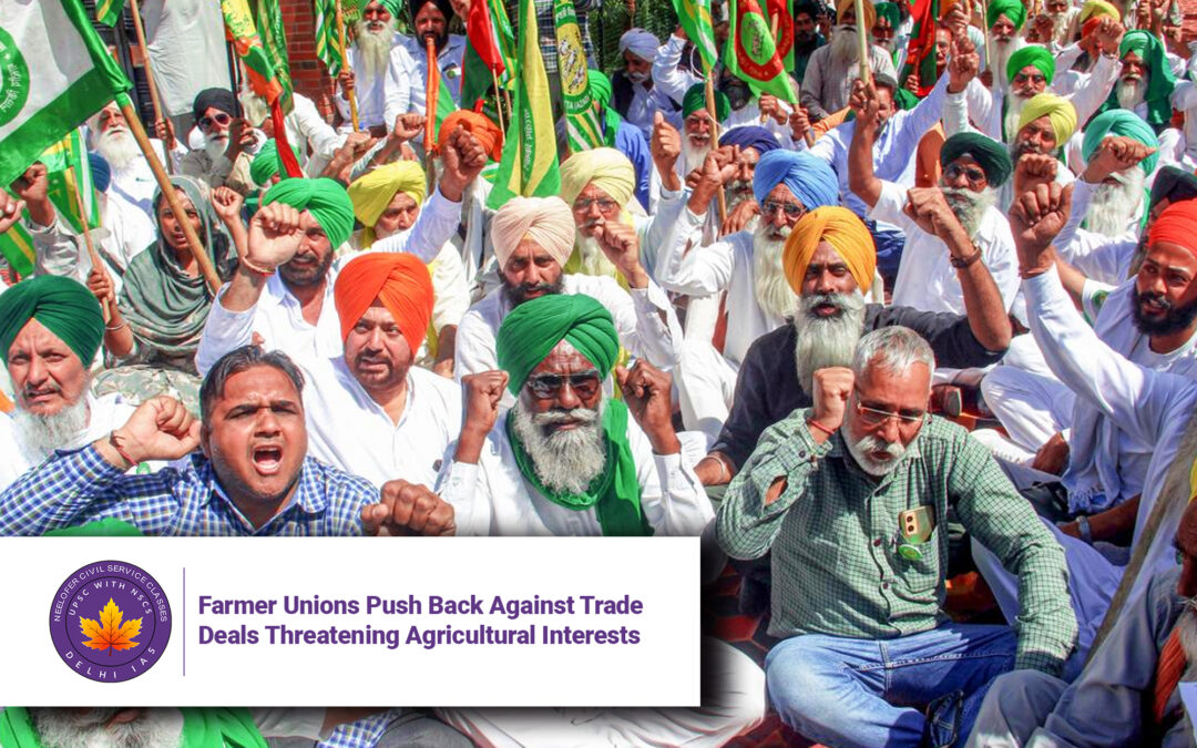 The National Democratic Alliance (NDA) government’s push for new trade deals, including bilateral agreements with the UK and EU and multilateral frameworks like RCEP (Regional Comprehensive Economic Partnership), is being met with resistance from farmer unions. These groups are wary of opening up India’s agriculture sector to cheaper imports, which they fear could destabilize prices, threaten food security, and harm local producers.
